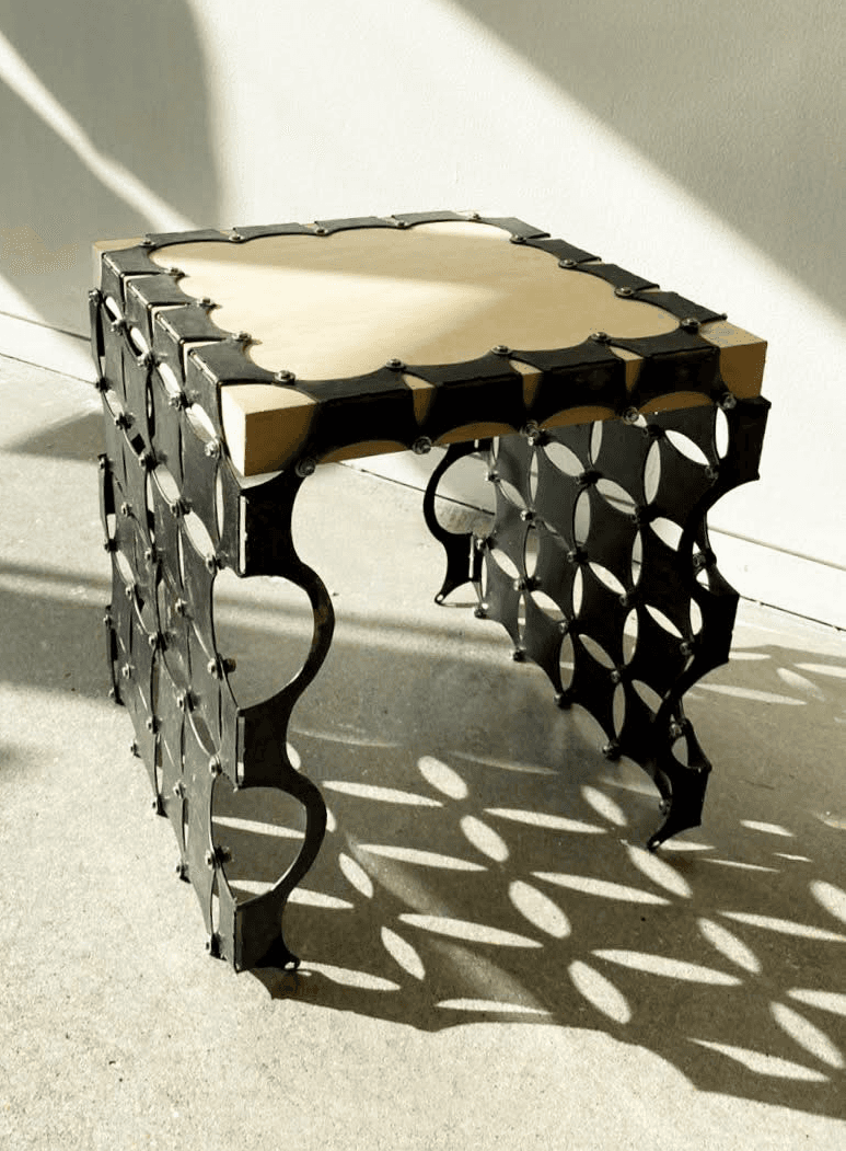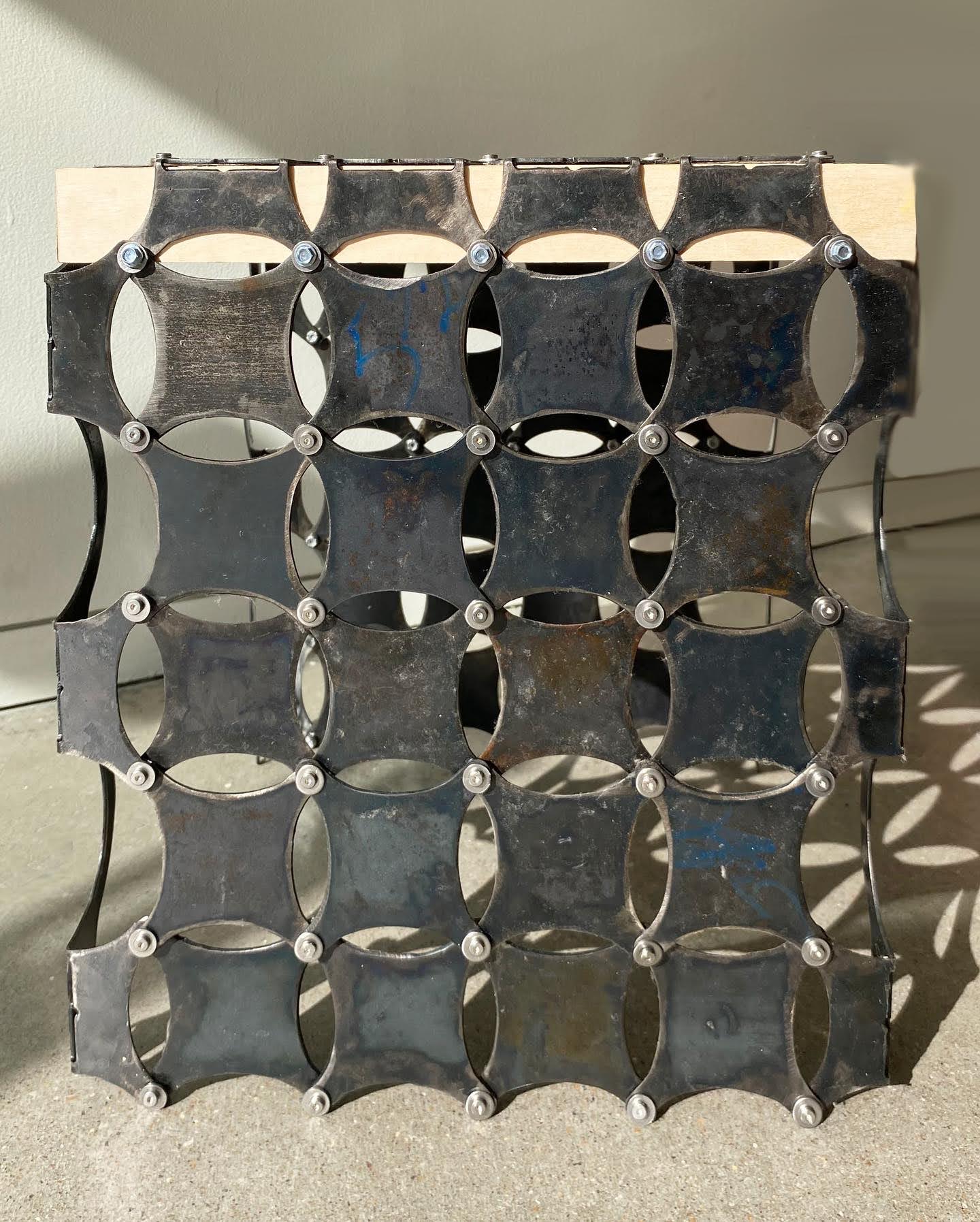 Made from 14 gauge mild steel, Baltic birch wood, and stainless steel hardware.